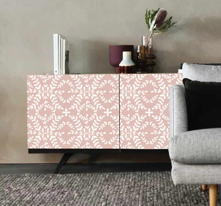 The Elaborate leaf motif decoration wall sticker features a stunning design that beautifully combines pink tones with intricate leaves and ornamental patterns. This floral and elegant decor piece offers a modern touch, showcasing an abstract aesthetic that flows seamlessly into any interior. Its soft tones create a warm ambiance, making it the perfect addition to your furniture and home decor!