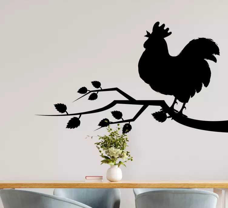 Transform your space with the stunning Farm animal wall sticker rooster on branch. This beautifully designed sticker features a charming rooster perched on a branch, with a striking silhouette that captures the essence of nature and farm life. The interplay of elegant lines and shapes creates an inviting atmosphere, perfect for any room that craves a touch of rustic charm. Let this delightful animal silhouette bring warmth and personality to your décor!