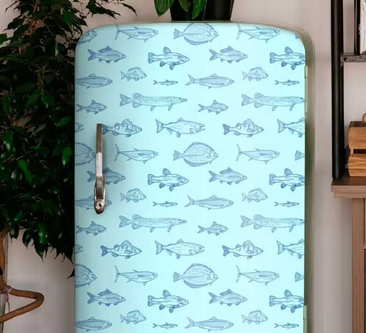 Transform your kitchen with our stunning Fridge sticker aquatic pattern design, featuring a captivating illustration of vibrant fish and marine life. The beautiful blue hues and intricate patterns evoke the essence of the ocean, bringing a splash of sea life into your home. This fridge sticker is not just a decoration; it’s a delightful addition that brightens your space with its artistic drawing of underwater wonders!