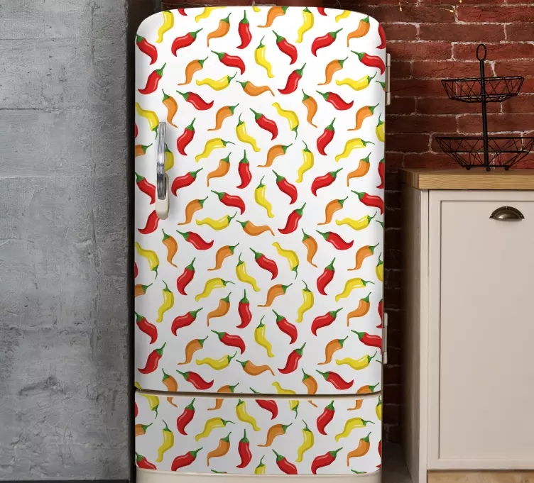 Brighten up your kitchen with our stunning Fridge sticker colorful chili peppers, featuring an eye-catching design that showcases vibrant peppers in a colorful pattern. This delightful fridge sticker is perfect for adding a splash of fun and creativity to your food space, making your kitchen feel lively and welcoming!
