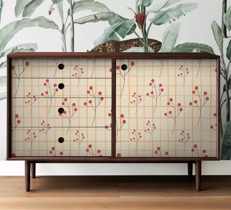 Transform your space with our stunning Furniture sticker floral pattern chest. This design features a captivating checkered grid adorned with vibrant berries and intricate floral elements. The colorful pattern brings life to any furniture, especially drawers and chests, making it the perfect addition to your home decor!