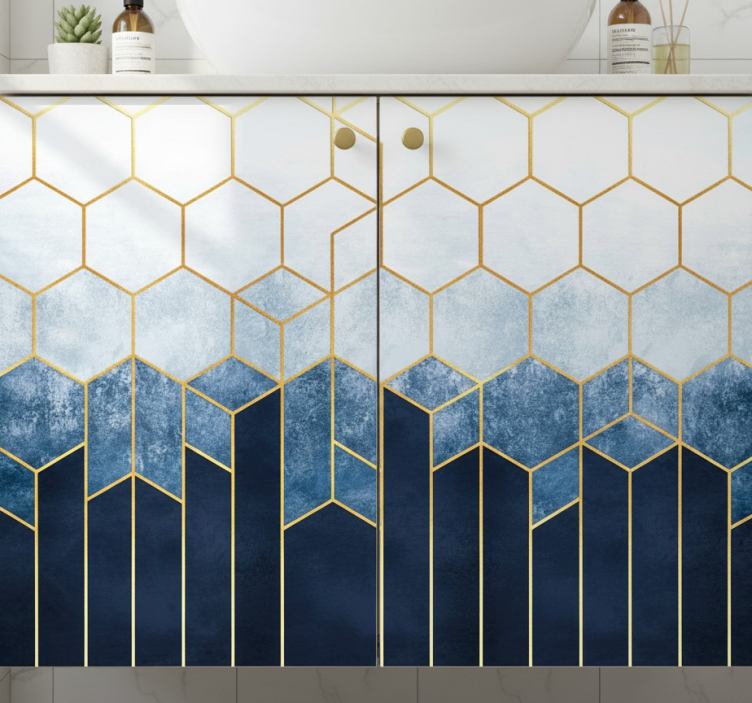 Reference: A54887The Furniture sticker navy gold honeycomb is a stunning design that beautifully blends elegance with modernity. Featuring an intricate honeycomb pattern in a rich navy and striking gold, this product adds a touch of sophistication to any space. The combination of these colors creates a visually appealing effect that enhances the aesthetics of your home or office.
