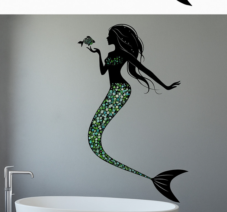 Reference: A54848Transform your bathroom into an enchanting underwater paradise with our Goddess green mermaid wall decal for bathroom. This stunning design features a beautiful mermaid surrounded by vibrant aquatic elements, invoking a sense of serenity and whimsy. The rich green tones and intricate details of the mermaid create a captivating focal point that is sure to delight anyone who enters the room.