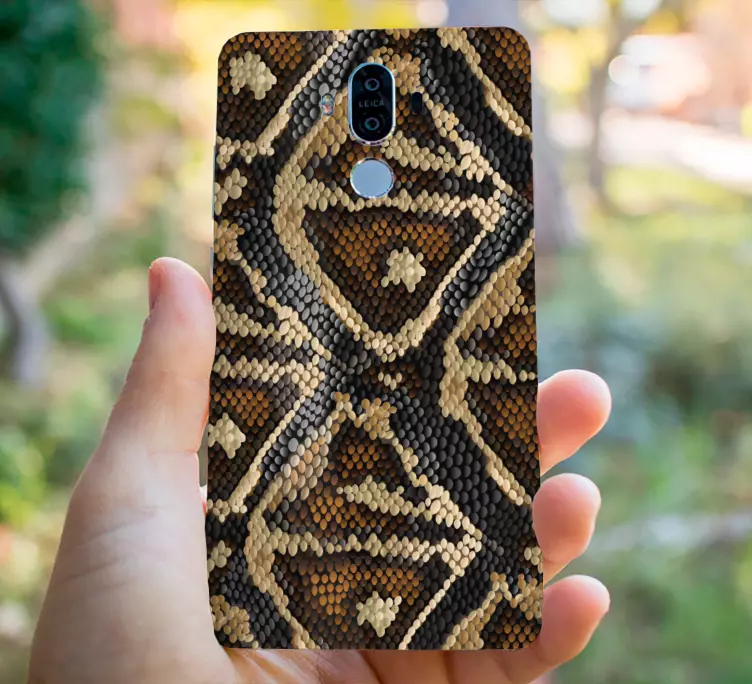 Introducing the Huawei sticker serpent skin finish, a stunning design that showcases an intricate snake pattern with a rich texture that beautifully mimics the look of real snake skin. The blend of brown and black creates a striking visual appeal, perfect for any phone, transforming your device into a statement piece that stands out from the crowd!