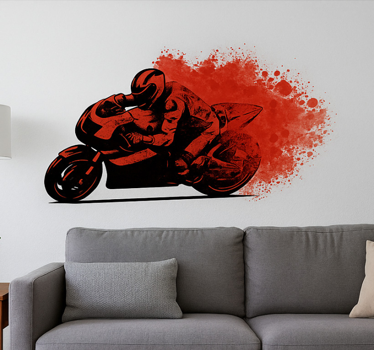 Reference: A54121Introducing the Motorbike sticker red splash rider, a vibrant and eye-catching design that features dynamic red splashes, embodying the thrill of riding. This sticker is perfect for those who want to express their passion for motorbikes with its striking graphics that make any bike stand out on the road.