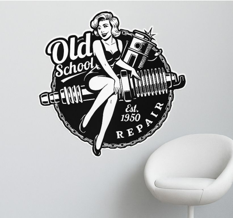 The Motorbike sticker vintage garage pinup motorbike sticker is the perfect choice for anyone looking to add a touch of personality to their space! Its captivating design inspires creativity and evokes nostalgia, making it an ideal decorative piece for garages, man caves, or any room that deserves a dash of vintage style. Transform your environment with this eye-catching sticker that invites admiration and conversation!