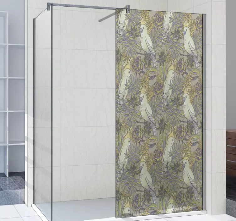 Transform your bathroom into a serene oasis with our Shower screen sticker with elegant bird designs. This enchanting design features beautifully illustrated parrots, lush leaves, and vibrant flowers that evoke the beauty of nature. The floral patterns dance across the surface, bringing an air of sophistication and elegance to your shower space. With a delightful mix of birds and botanical elements, this decorative piece is a perfect way to add a touch of whimsy and charm to your daily routine!