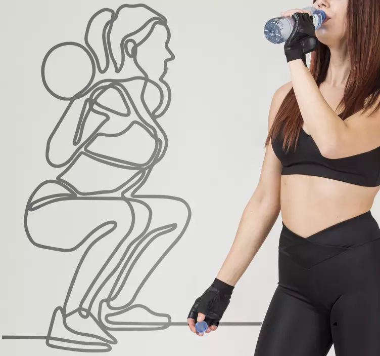 The Sports wall sticker dynamic fitness pose features a stunning graphic design that captures the essence of a woman in a gym, showcasing a beautiful lineart drawing of exercise and fitness. This artistic representation of a squat embodies a healthy lifestyle filled with active movement, making it an inspiring addition to any space!