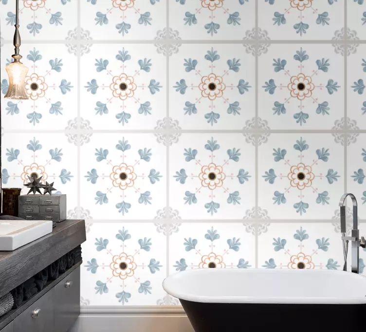 Introducing our stunning Tile sticker floral mosaic design, a visual feast that combines the elegance of floral motifs with the classic charm of ceramic tiles. This exquisite design features intricate plant motifs and beautiful flower designs in vibrant shades of blue, perfect for adding a refreshing touch to any space. Transform your room with this elegant cement tile look that brings nature indoors!