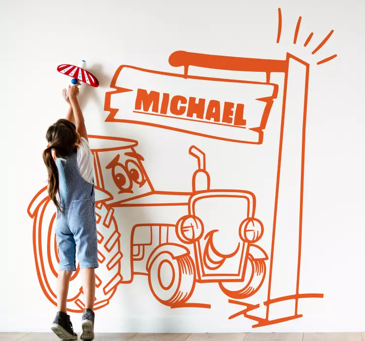 Transform your child's room with our Wall sticker for kid playful tractor scene, featuring a delightful hand-drawn design. This whimsical sticker showcases a colorful tractor that effortlessly sparks joy and imagination in any kids' room. Customizable text options make it a personalized addition, ensuring it resonates with your child's unique personality. The playful scene is designed to create a fun atmosphere that stimulates creativity and adventure!