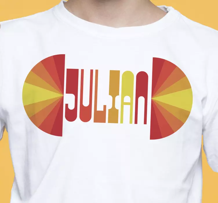 Reference: T4236This stylish piece features a vibrant name display in bold typography. The design incorporates warm colors radiating in a circular pattern, creating an eye-catching focal point. Ideal for showcasing individuality and a sense of style.