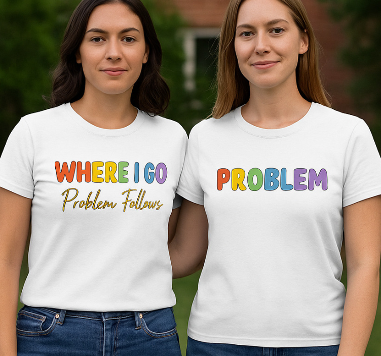 To keep your Couple t-shirts lgbt wherever i go problems follow couple t-shirts looking fresh, machine wash them at 30 degrees. For best results, iron the t-shirt inside out or use a barrier cloth to protect the vibrant design. This simple care routine ensures your t-shirts stay vibrant and comfortable for all your adventures!
