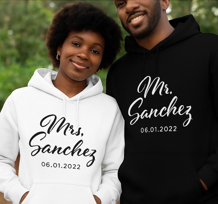 When it comes to expressing your love, the Couple t-shirts mr & mrs "sanchez" couple t-shirts are a must-have! These t-shirts are not just clothing; they represent a shared journey, a celebration of togetherness, and a fun way to showcase your unique bond. Wearing matching t-shirts is a fantastic way to create lasting memories, whether you're on a romantic date, a fun day out, or simply enjoying a cozy evening at home. Let the world know that you are a team with these stylish couple t-shirts!