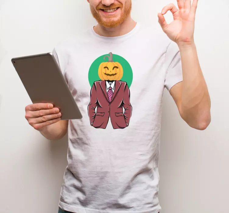 Reference: T1995Upgrade Your Halloween Wardrobe with an Elegant Pumpkin Man Suit T-Shirt