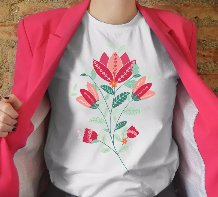 Introducing our stunning Floral blossom arrangement t-shirt, a vibrant celebration of nature that beautifully encapsulates the essence of spring. This design features an exquisite hand drawn arrangement of colorful flowers, inspired by folklore and traditional art forms. With its tribal motifs and botanical influences, this t-shirt is a perfect fusion of folk aesthetics and modern style, making it an eye-catching addition to your wardrobe!