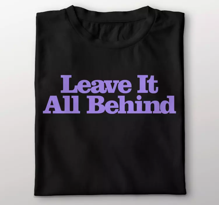 Introducing the Leave it all behind t-shirt, a modern piece designed to inspire and motivate! This t-shirt features a stunning graphic design with the words 'leave behind' elegantly displayed in a vibrant purple against a sleek black background. The motivational quote is sure to resonate with anyone looking for a reminder to embrace new beginnings and let go of the past.