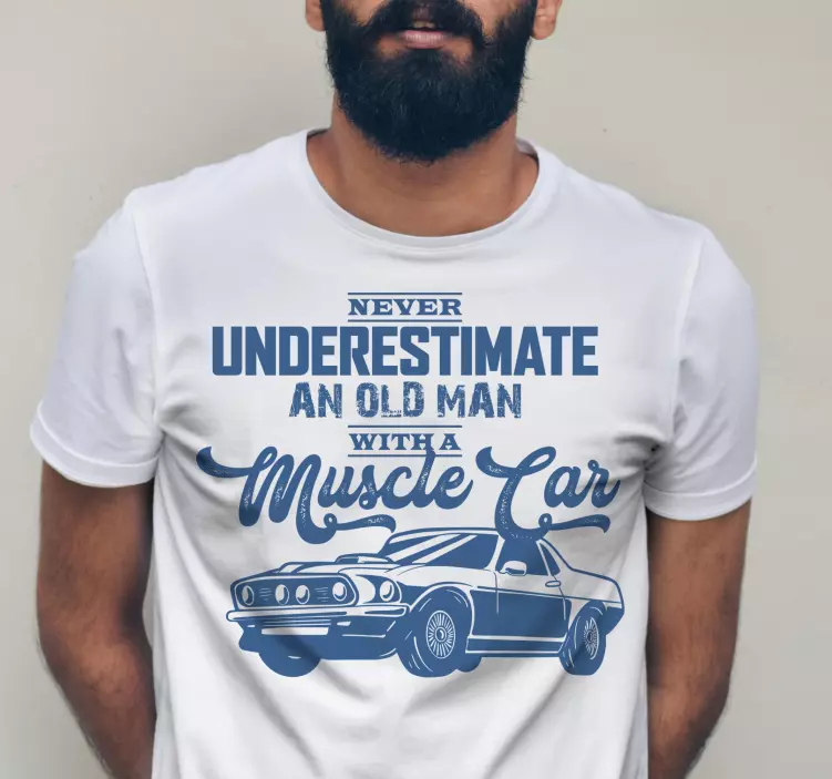Get this design and empower yourself with an amazing design. This is more than just something pretty that you can wear. This product is made with the best materials available in the market and your satisfaction in mind. This will look great in any occasion. It is made with soft cotton and you can pick from the different standard sizes we offer. This design has a blue inspiring quote about oldness and a muscle car motif.
