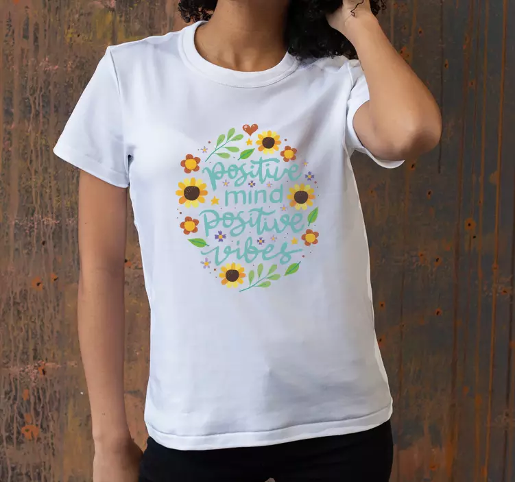 Introducing our Positive mind vibes t-shirt, a vibrant and uplifting piece that features a delightful design of sunflowers and a heartwarming message. This t-shirt embodies the essence of mindfulness, combining elements of nature with a motivational text that radiates positivity and good vibes. Made from a soft and comfortable blend of 85% cotton and 15% viscose, this t-shirt is perfect for anyone looking to express their cheerful spirit while enjoying a casual day out.