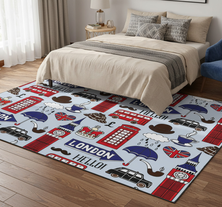 Reference: R21804Transform your space with the Bedroom vinyl rug best of british london, a stunning piece designed to capture the essence of London's vibrant culture. Featuring an inspiring blend of colors and patterns that evoke the city's iconic landmarks and style, this rug not only beautifies your room but also adds a touch of sophistication. Its scratch-resistant and fireproof properties ensure durability, while its anti-slip design keeps it securely in place, making it both a practical and stylish choice for any bedroom!