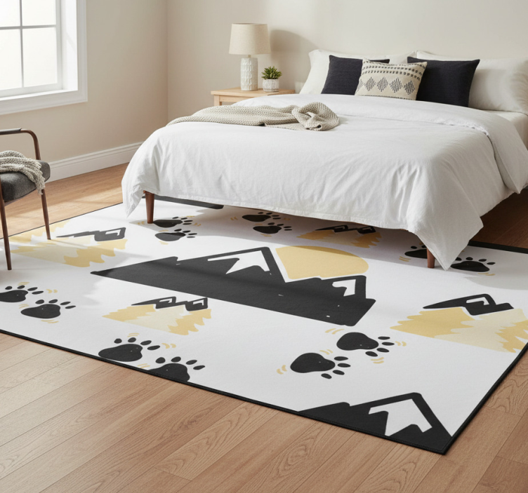 Elevate your interior design with the Bedroom vinyl rug footprints on white background bedroom vinyl rug! Its unique design brings joy and warmth, making it an ideal centerpiece for your bedroom. The charming footprint pattern adds personality while seamlessly blending with your decor, inspiring you to create a cozy sanctuary where comfort meets style. Perfect for any age, this rug invites creativity and comfort into your space!