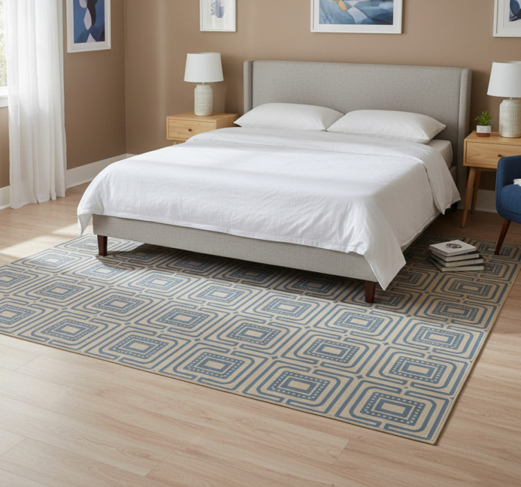 Maintaining the beauty of your Bedroom vinyl rug in bronze and dark blue squares bedroom vinyl rug is a breeze! Simply wipe it down with a damp cloth or use a gentle cleaner for any stubborn stains. Enjoy its low-maintenance charm and keep your space looking fresh and inviting.