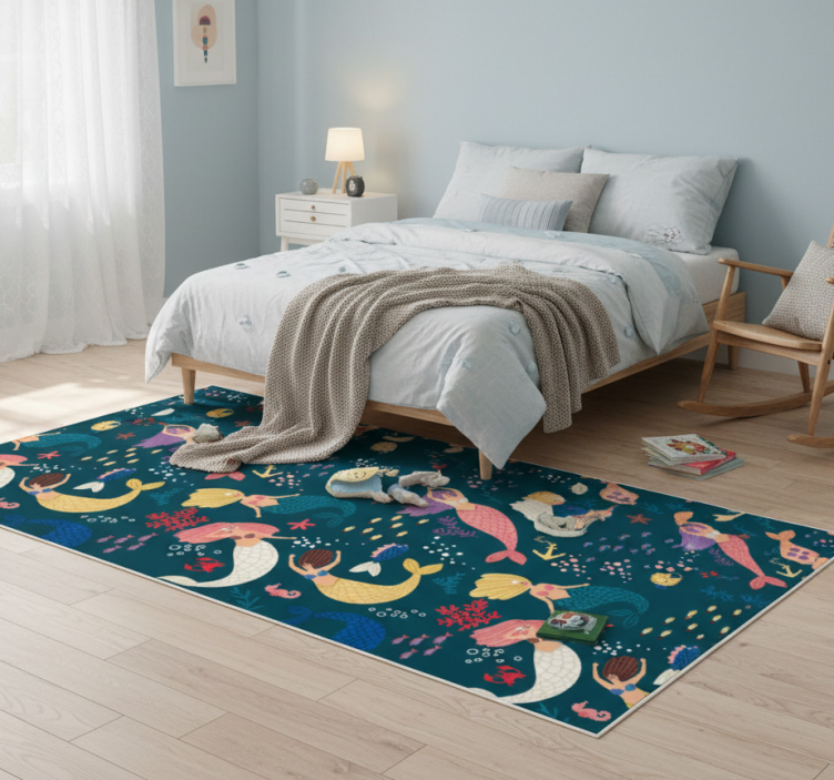 Bedroom vinyl rug in dark blue mermaid pattern
