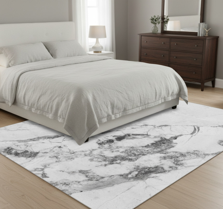 Elevate your interior with the Bedroom vinyl rug in light and dark marble pattern bedroom vinyl rug. This stunning piece serves as a focal point, seamlessly blending style and functionality. Its unique design invites warmth and sophistication, making it perfect for any decor style. Whether you're looking to refresh your bedroom or create a cozy nook, this rug adds a touch of elegance that inspires comfort and relaxation!