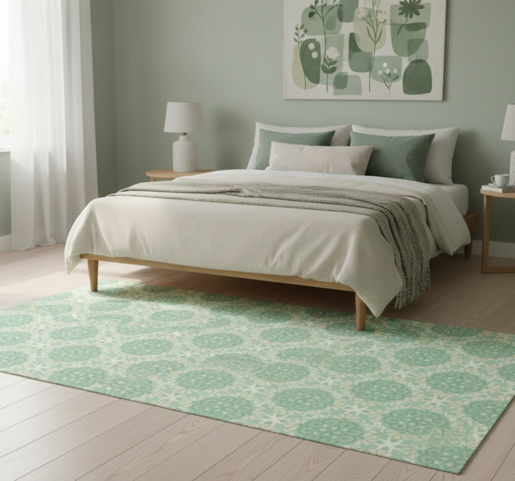 The Bedroom vinyl rug in nordic green floral design bedroom vinyl rug is not just a floor covering; it's a statement piece that enhances the beauty of your space. Its enchanting design adds character and warmth, inviting relaxation and tranquility into your bedroom. Imagine waking up every day to the serene aesthetics of this vibrant rug!