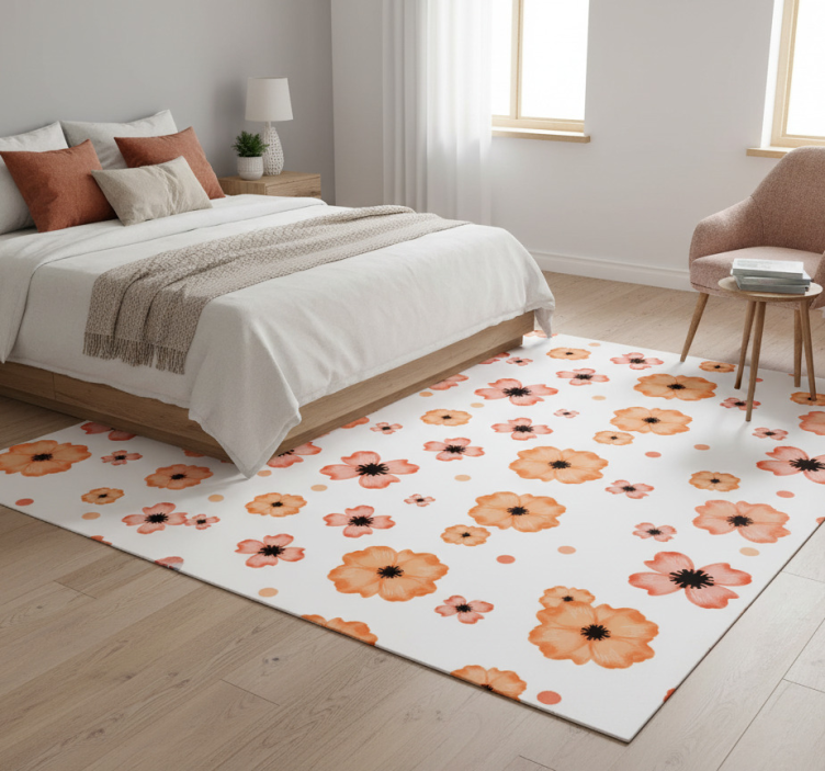Bedroom vinyl rug in orange and pink watercolor