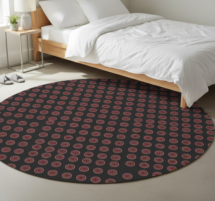 Reference: R24282Transform your living space with the vibrant Bedroom vinyl rug in red seamless round pattern. This captivating rug features a stunning design that combines a seamless round pattern with a rich red hue, creating an inviting atmosphere perfect for any bedroom. With its easy-to-clean surface, anti-slip backing, and scratch-resistant materials, this rug not only enhances your decor but also protects your floors beautifully!