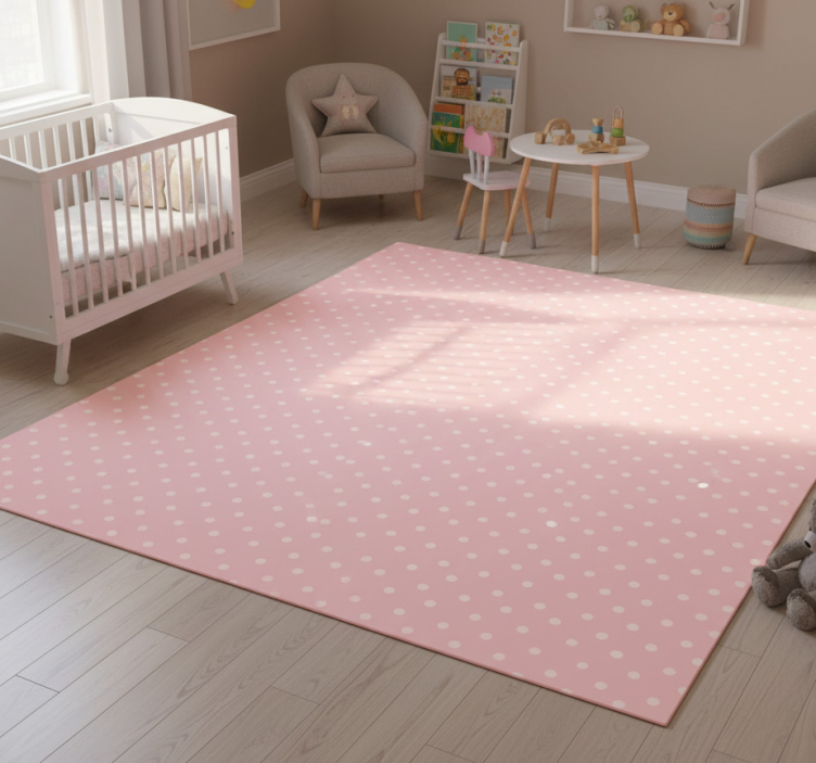 Bedroom vinyl rug in soft pastel baby dots