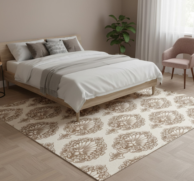 Elevate your interior with the Bedroom vinyl rug in vintage damask style bedroom vinyl rug. This delightful addition brings a touch of sophistication to your home while offering a warm and inviting atmosphere. The timeless damask design creates a beautiful focal point that transforms dull spaces into vibrant retreats. With its captivating aesthetic, it inspires creativity and comfort, making it a must-have for any bedroom decor!