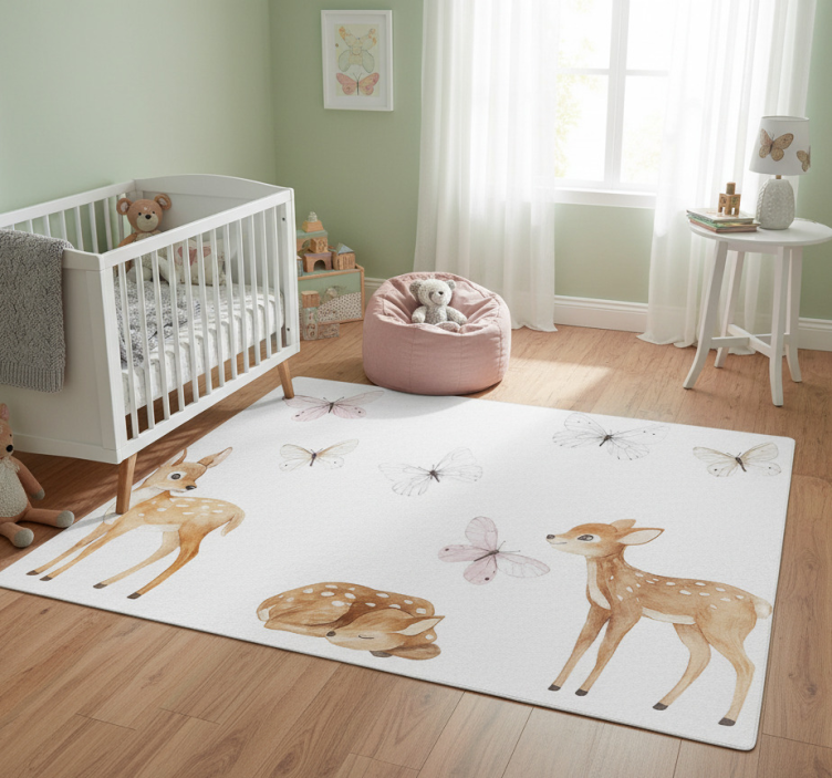 Bedroom vinyl rug little deer with butterflies