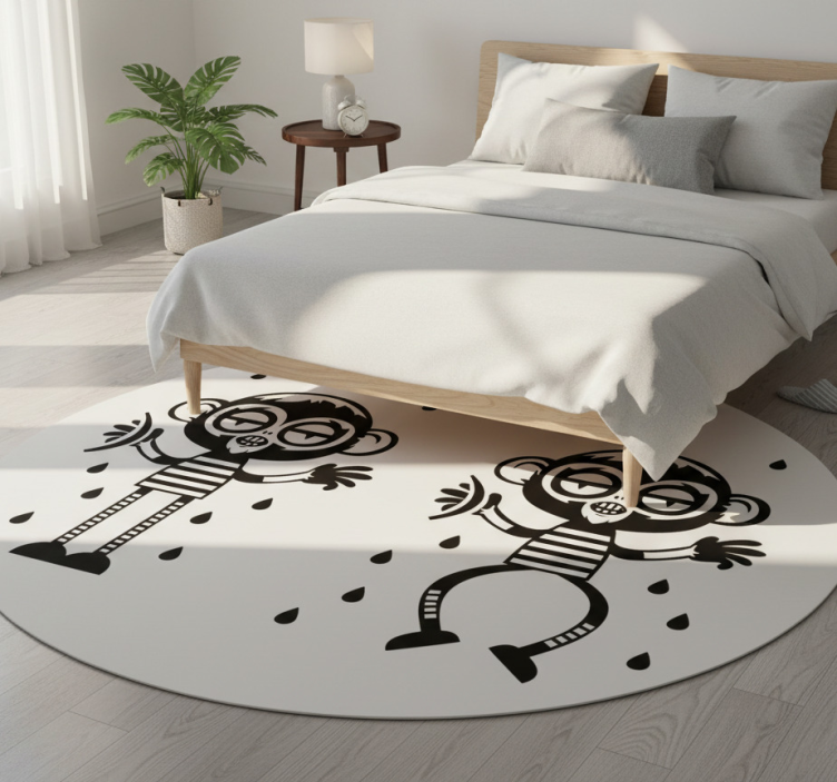 The Bedroom vinyl rug monkey couple decor bedroom vinyl rug is perfect for anyone looking to add a touch of fun and warmth to their living space! This rug not only brightens your bedroom but also serves as a protective layer for your floor. Its unique design makes it an ideal choice for kids' rooms or playful spaces, making every day feel like a whimsical adventure!