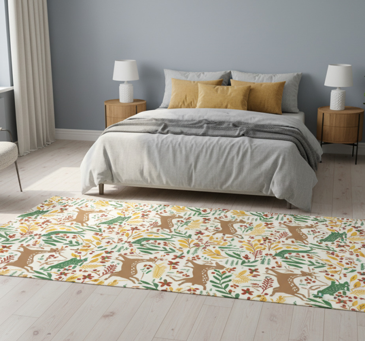 Bedroom vinyl rug with gray deer and yellow flowers
