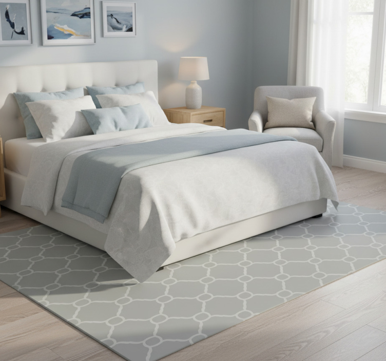 Embrace the charm of effortless decor with the Bedroom vinyl rug with gray geometric pattern bedroom vinyl rug! This stylish addition elevates your bedroom, creating a warm and inviting atmosphere that encourages relaxation and comfort. Its versatile design allows it to blend seamlessly with your existing furnishings, making it a perfect choice for enhancing your personal sanctuary.