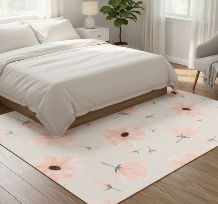 Bedroom vinyl rug with large floral watercolor design