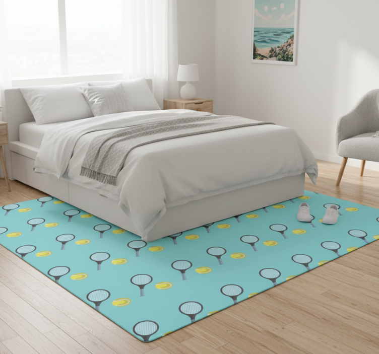 The Bedroom vinyl rug with tennis rackets and balls pattern bedroom vinyl rug is the perfect decorative piece to elevate your interior. It effortlessly infuses energy and style into any bedroom, creating a cheerful atmosphere that can inspire your day. Its unique pattern captures the essence of tennis, making it an ideal choice for those who appreciate both sports and aesthetics. Let your personality shine through with this eye-catching rug!