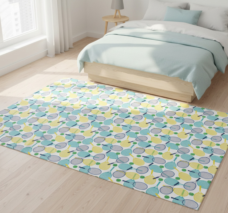 The Bedroom vinyl rug with vibrant racket designs bedroom vinyl rug is not just a functional item; it is a statement piece that enhances the ambiance of your room. With its vibrant colors and unique design, it ignites creativity and joy in your space. This rug acts as a canvas for your personality, inviting guests and family to feel the warmth and charm of your decor!