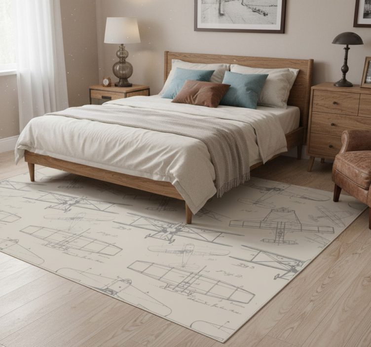Bedroom vinyl rug with vintage airplane pattern