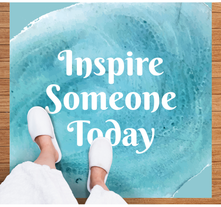 Transform your space with our Custom vinyl rug inspirational quote design, featuring an abstract brush stroke that beautifully blends teal watercolor tones. This design not only captivates the eye but also serves as a daily reminder of motivation and inspiration for someone special today!