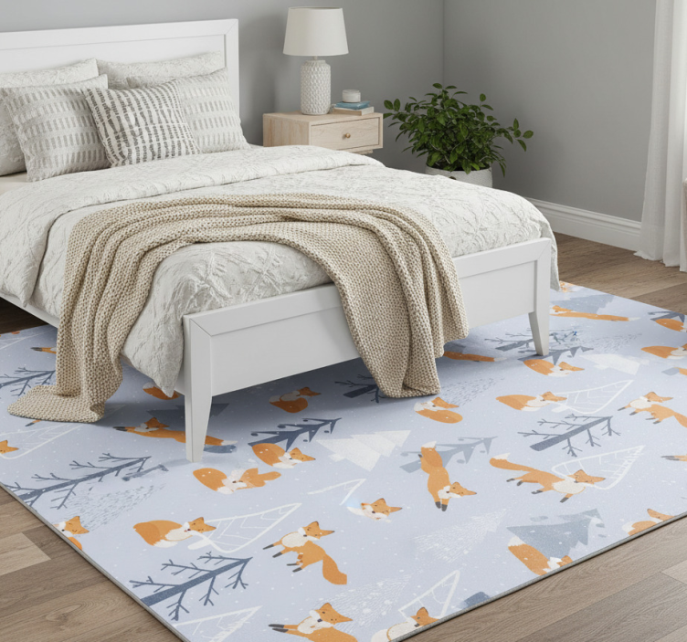 Reference: R21846Transform your space with the enchanting cute fox winter forest bedroom vinyl rug. This delightful design captures the whimsical charm of a serene winter forest, featuring adorable foxes nestled among soft snowflakes and gentle pine trees. The vibrant colors and playful imagery create a cozy atmosphere perfect for any bedroom, bringing warmth and joy to your decor!