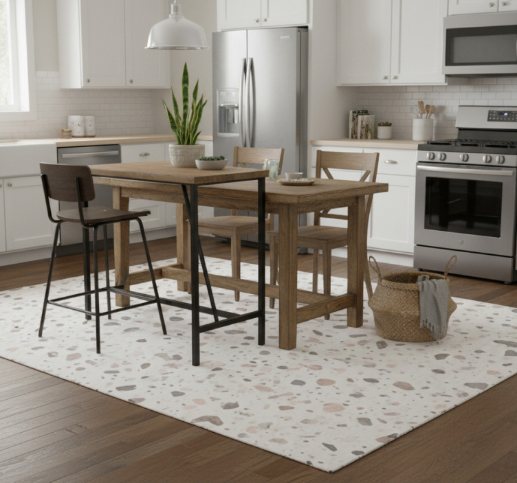 The Kitchen vinyl rug with terrazzo design kitchen vinyl rug is perfect for anyone looking to enhance their kitchen's aesthetic! Its chic design complements various interior styles, making it a versatile choice for your home. The unique terrazzo pattern brings a pop of color and creativity, inspiring joy and liveliness in your cooking space!