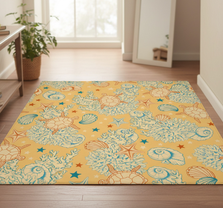 The Nature vinyl rug coral and ocean life is an inspiring choice for decoration, effortlessly enhancing the ambiance of your living space. Its enchanting design not only adds a splash of color but also evokes the serene beauty of the ocean, making every day feel like a vacation. Ideal for those looking to create a calming and stylish environment, this nature vinyl rug will surely become the centerpiece of your home!