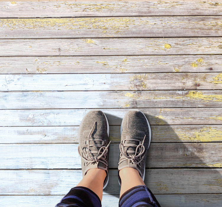 Rustic planks painted in white wood effect vinyl flooring