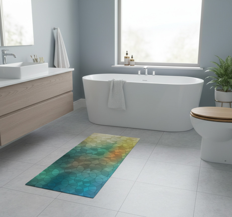 The Vinyl rug bathroom with 3d glass effect design vinyl rug bathroom is perfect for anyone looking to elevate their décor. Its unique design adds a touch of elegance and sophistication, making it a delightful focal point in your bathroom. Imagine stepping onto a rug that not only protects your floor but also enhances the overall aesthetic of your space! It's a simple yet effective way to refresh your home.