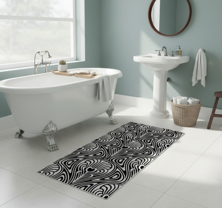 The Vinyl rug bathroom in art nouveau style vinyl rug bathroom is the perfect decorative piece to elevate your bathroom ambiance. Infusing your space with beauty, it enchants anyone who steps inside. This rug seamlessly combines aesthetics and functionality, making it an ideal choice for those who appreciate both style and practicality!