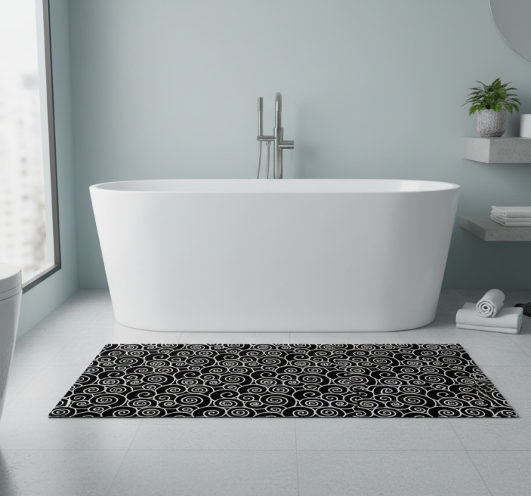 The Vinyl rug bathroom circles and waves design vinyl rug bathroom is not just a floor covering; it's a statement piece! This rug adds a vibrant splash of color and a contemporary vibe, making your bathroom feel more inviting and stylish. Whether you're aiming for a soothing retreat or a lively atmosphere, this design effortlessly enhances your decor, creating a joyful environment that you will love.