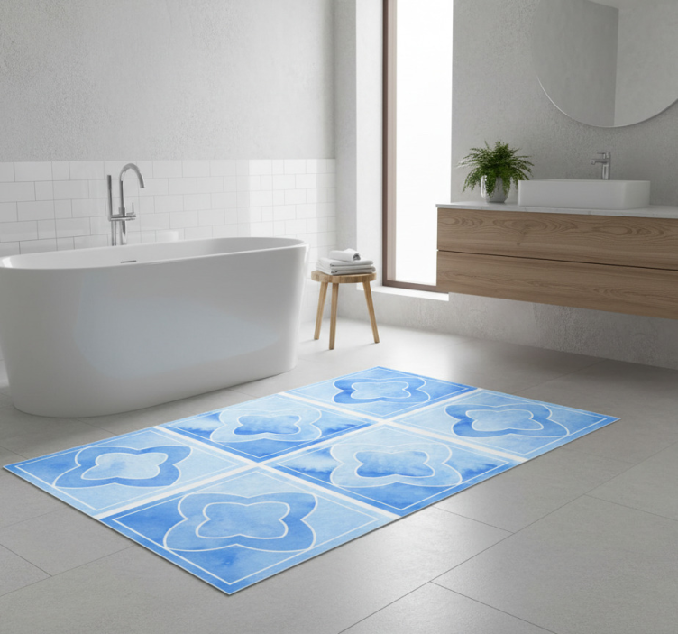 The Vinyl rug bathroom in mosaic shades of blue tile vinyl rug bathroom is an exceptional choice to elevate your decor. Its eye-catching design adds personality and style to any bathroom while offering a cozy feel underfoot. Perfect for anyone looking to create a serene atmosphere, this rug complements various color schemes effortlessly, making it an inspiring addition to your space!