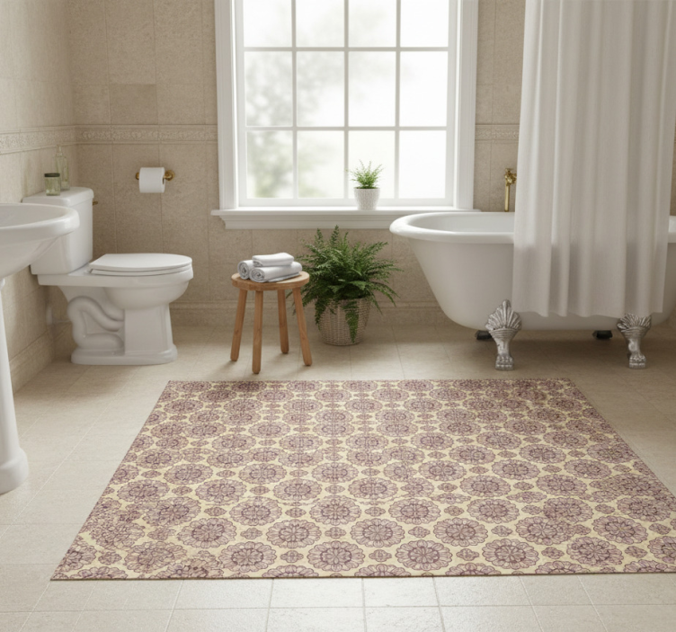 The Vinyl rug bathroom in purple ethnic mandala style vinyl rug bathroom is the perfect choice for those looking to add a touch of elegance to their decor. Its unique design draws the eye and sparks conversation, making it a fantastic addition to any bathroom. Imagine stepping onto this beautiful rug every day, brightening your space and enhancing your mood! Embrace the charm of this rug and transform your bathroom into a stylish retreat.